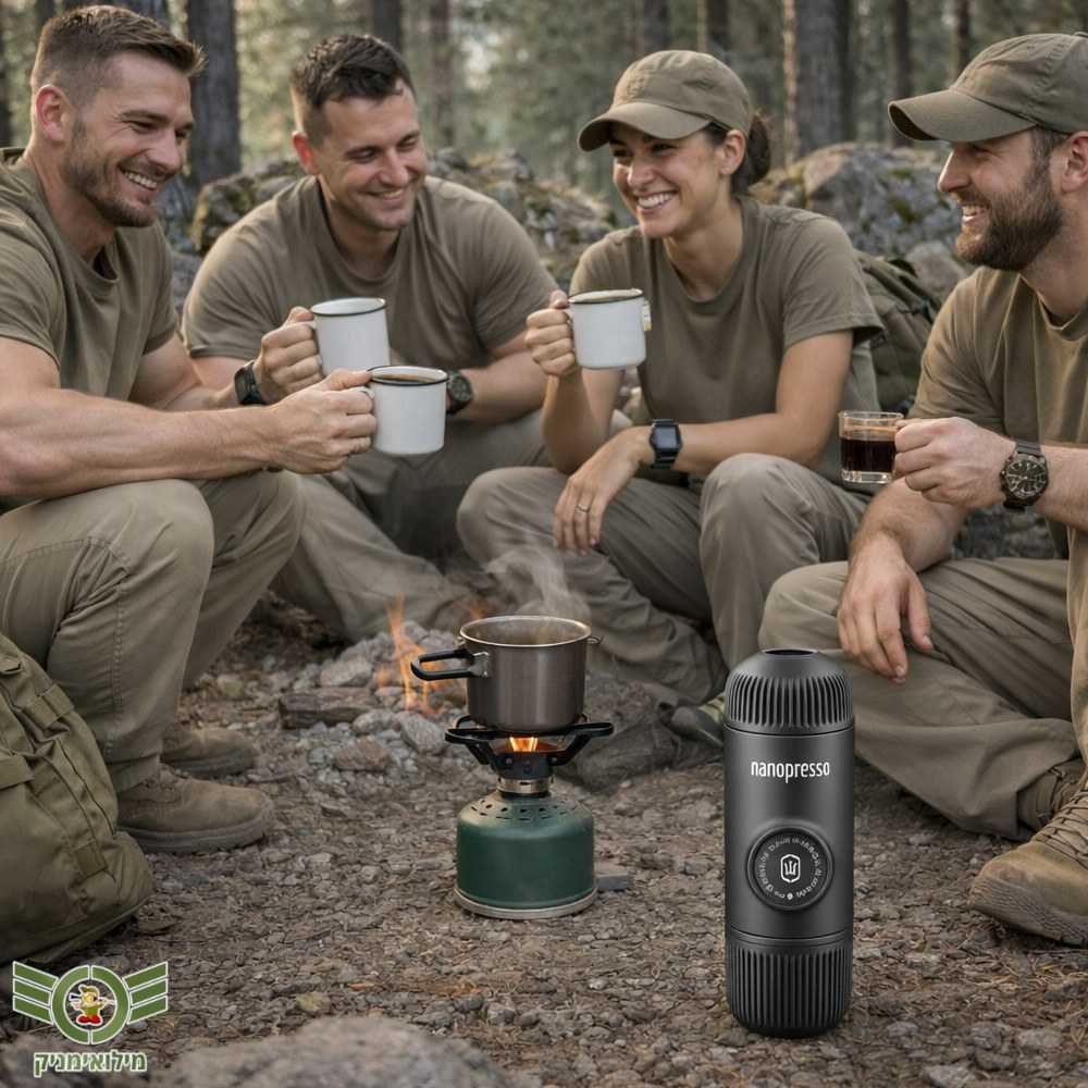 אספרסו אמיתי. בכל מקום. בלי חשמל. המוצר המשולם לאנשים שלא מוכנים להתפשר על הקפה שלהם — גם באמצע שטח, מילואים, טיול או חוף
